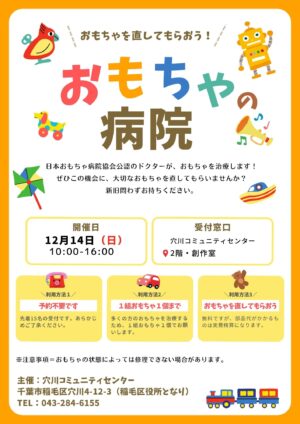 おもちゃの病院が開院します。あなたが大切にしているおもちゃを直してもらいませんか。