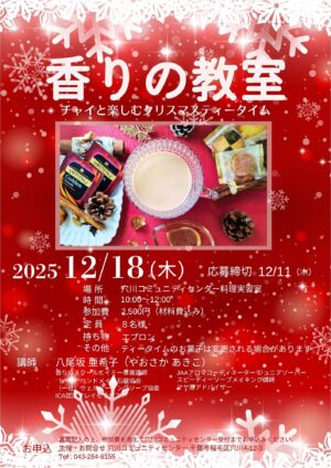 「チャイと楽しむクリスマスティータイム」をテーマに教室を開催します