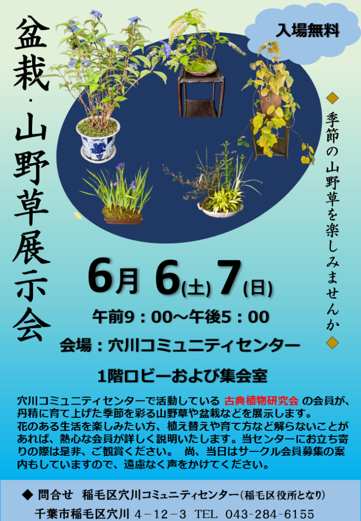 6月6日(土)7日(日)、古典植物研究会の皆様による展示会が開催されます。