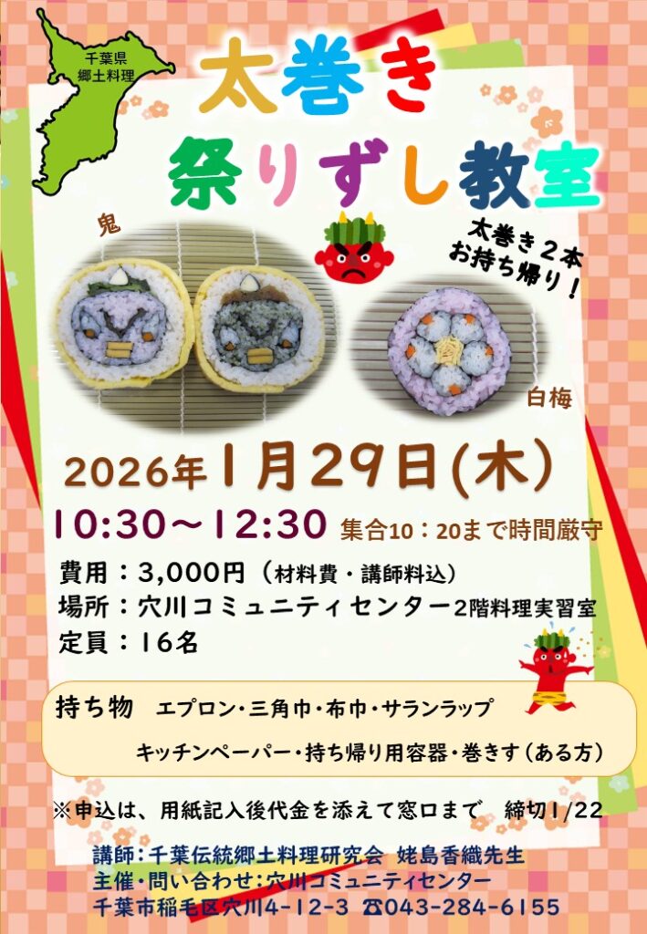 千葉伝統の太巻き祭りずしを作ってみませんか。