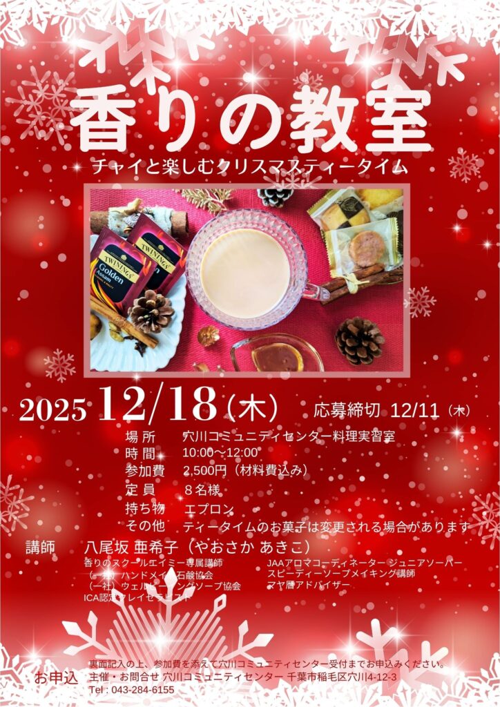 「チャイと楽しむクリスマスティータイム」をテーマに教室を開催します